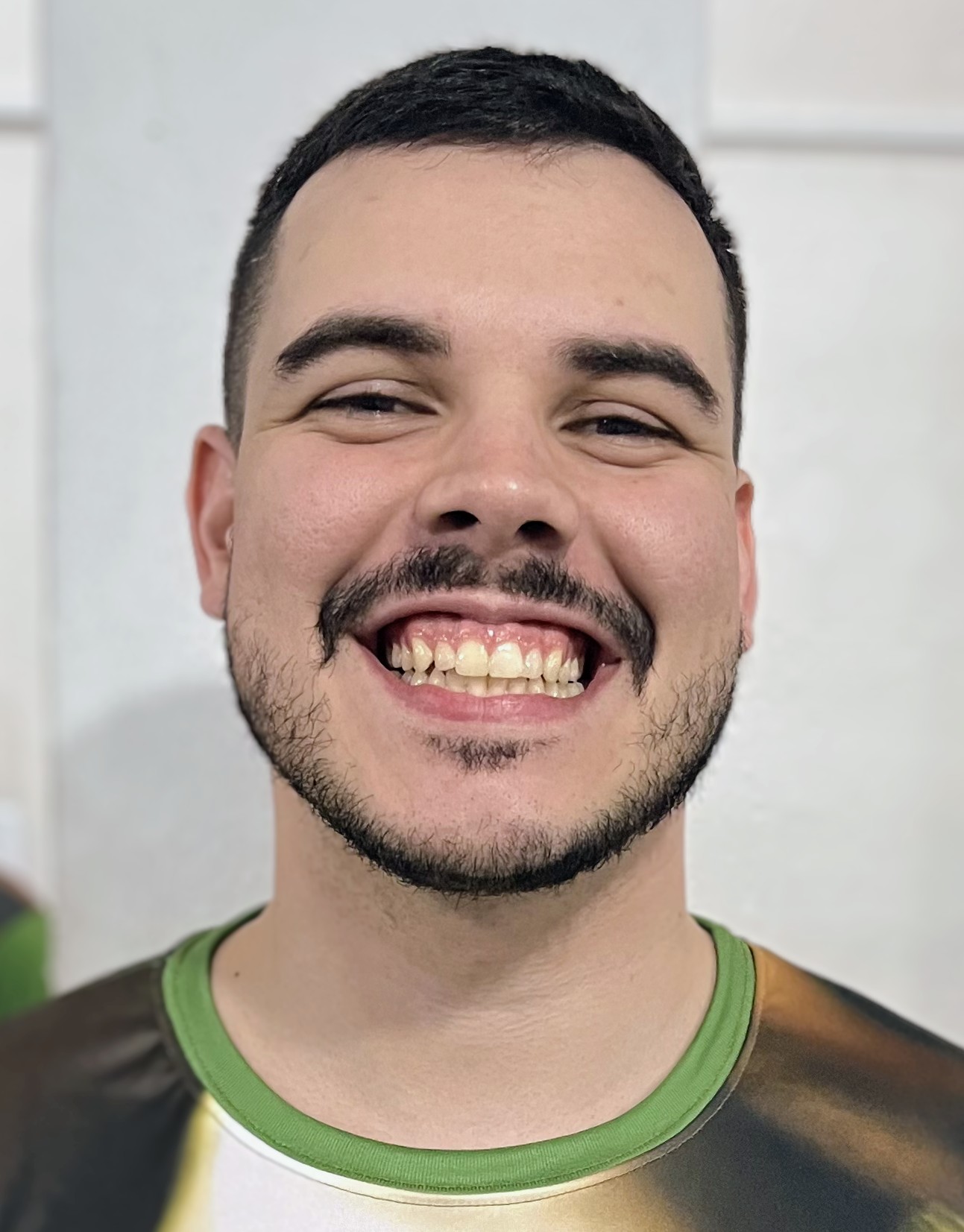 Com sete anos de prática no CEDEM, Rodrigo é um ogã que leva a tradição a sério, buscando sempre repassar aos alunos o respeito e a responsabilidade que o toque do atabaque exige. Com um estilo de ensino acolhedor, ele guia os alunos desde os fundamentos até as práticas mais avançadas, proporcionando uma experiência de aprendizado segura e respeitosa.